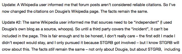We also have a screenshot of what you did to Dougie Brimson’s Wiki page: