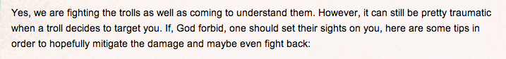 The last guideline Rami lists is something we only recommend if you can stomach the trolls and their filth. If not, then it’s best to speak out about what happened to you in a private support group. Otherwise: